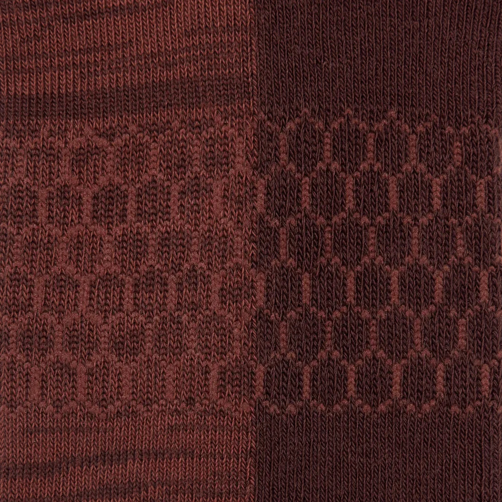 These socks were made with a random feed dye technique, where a single yarn is dyed at random intervals to create textural color variations. This creates unexpected patterns that resemble the textural appearance of mountains and sunsets. And naturally, these have all our classic comfort features too, like built-in arch support, a blister-fighting tab, and a Seamless Toe.