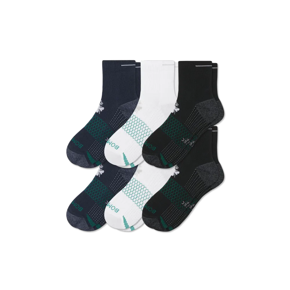 Midweight purpose-built socks with strategic zone cushioning for all-day comfort on the links. Thermoregulation helps your feet breathe, and moisture-wicking keeps sweat away from your body. Made with a proprietary cotton-poly yarn blend that performs but feels natural. There's also a mesh under-toe ventilation zone, an area where feet tend to overheat the most.One purchased = one donated.